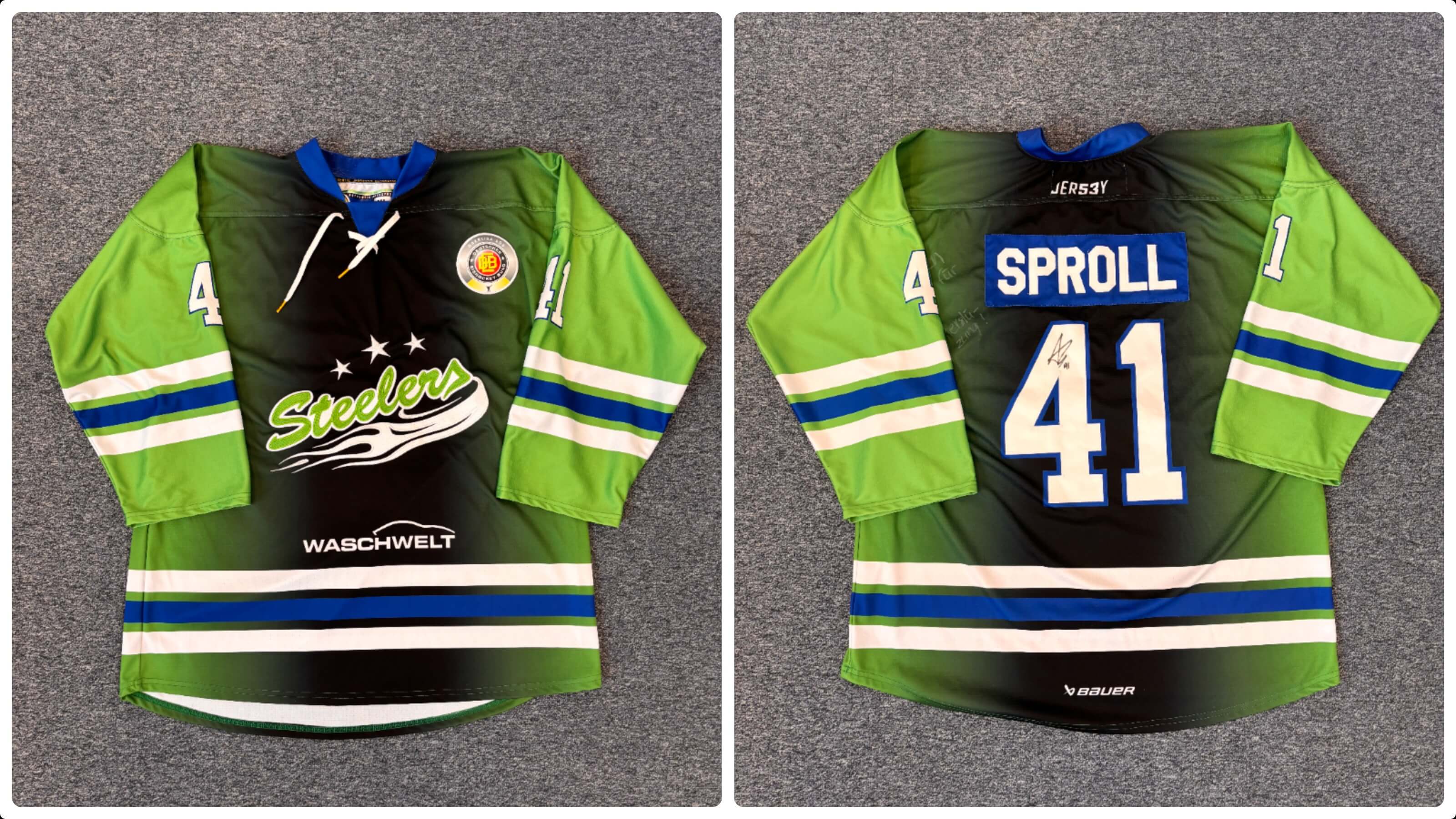Versteigert wird das originale Warm-Up Trikot von Anton Sproll (Rückennummer 41) aus der Oberliga Meistersaison 2024/2025.