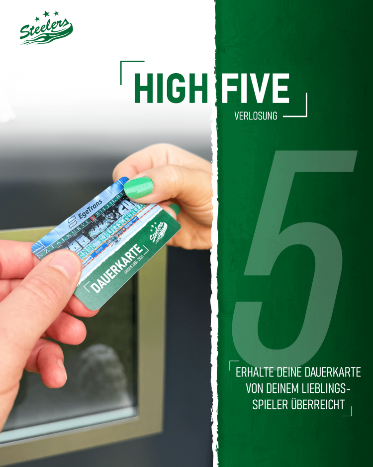 Die vierte Woche unseres Dauerkartenverkaufs neigt sich dem Ende entgegen und auch heute Abend ziehen wir um 19:00 Uhr wieder 5 glückliche Gewinner unserer High-Five Aktion.