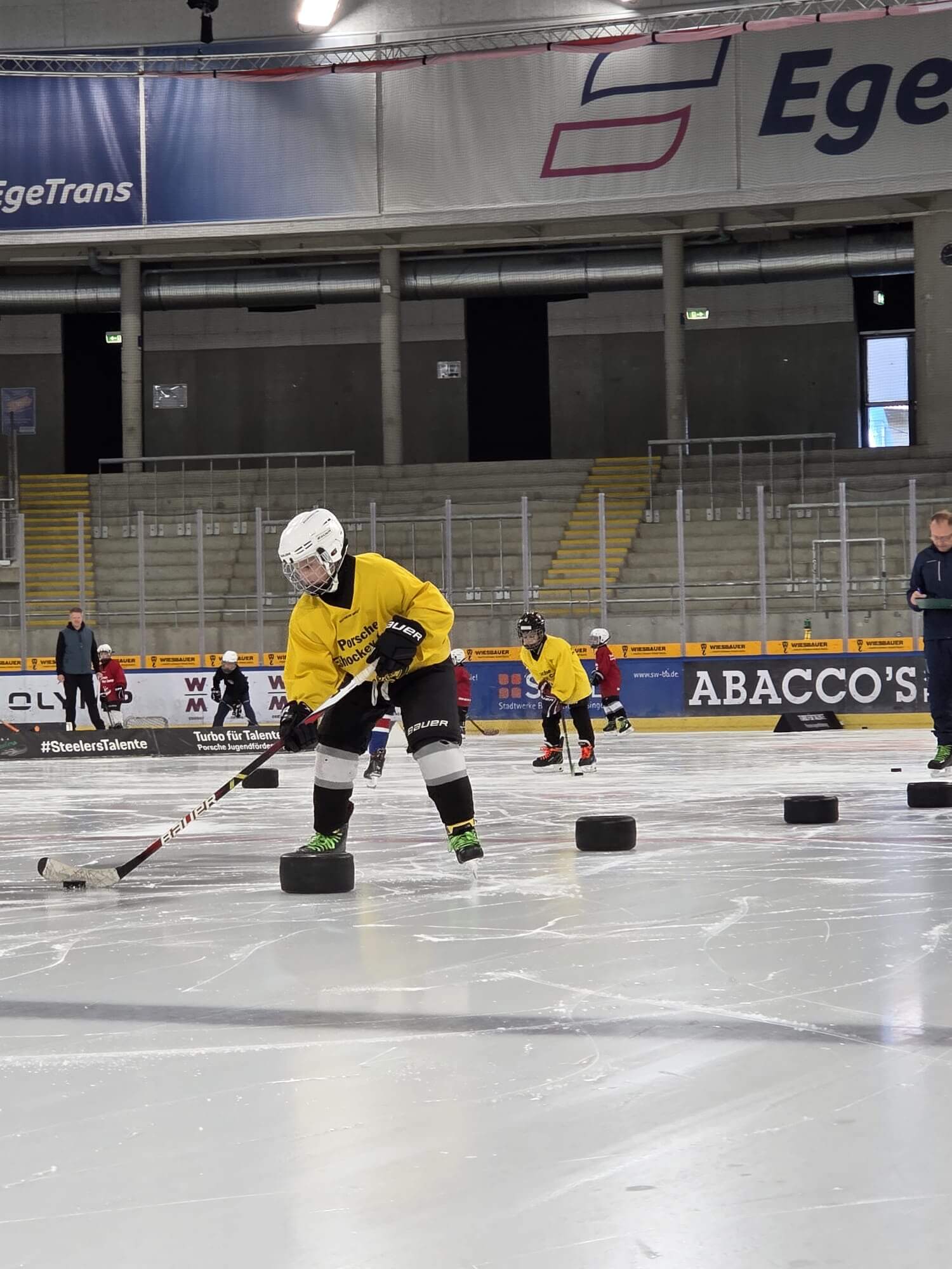 Zwischen den Trainingseinheiten stärkten wir uns mit einem leckeren Mittagessen vom Förderverein im Overtime, das bei allen super ankam. Ein besonderes Highlight: Jeder Teilnehmer bekam einen stylischen Turnbeutel mit coolen Geschenken von unserem Sponsor myhockey365 – ein tolles Andenken an unvergessliche Tage. Ein riesiges Dankeschön geht an unseren Hauptsponsor Porsche, ohne dessen Unterstützung dieses Camp in dieser Form nicht möglich gewesen wäre. Danke auch an alle Trainer, Betreuer und Helfer – ihr habt mit eurem Einsatz und eurer Leidenschaft die Camps zu etwas Besonderem gemacht. Die Stimmung war einfach großartig – Teamgeist pur, viele neue Freundschaften und jede Menge Spaß. Für leuchtende Augen sorgten auch unsere Profispieler, die mit auf dem Eis standen, wertvolle Tipps gaben und sogar beim Mittagessen mit dabei waren.